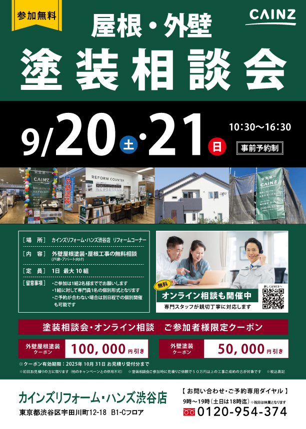 9/18更新:◆ 屋根・外壁塗装相談会 開催! ◆